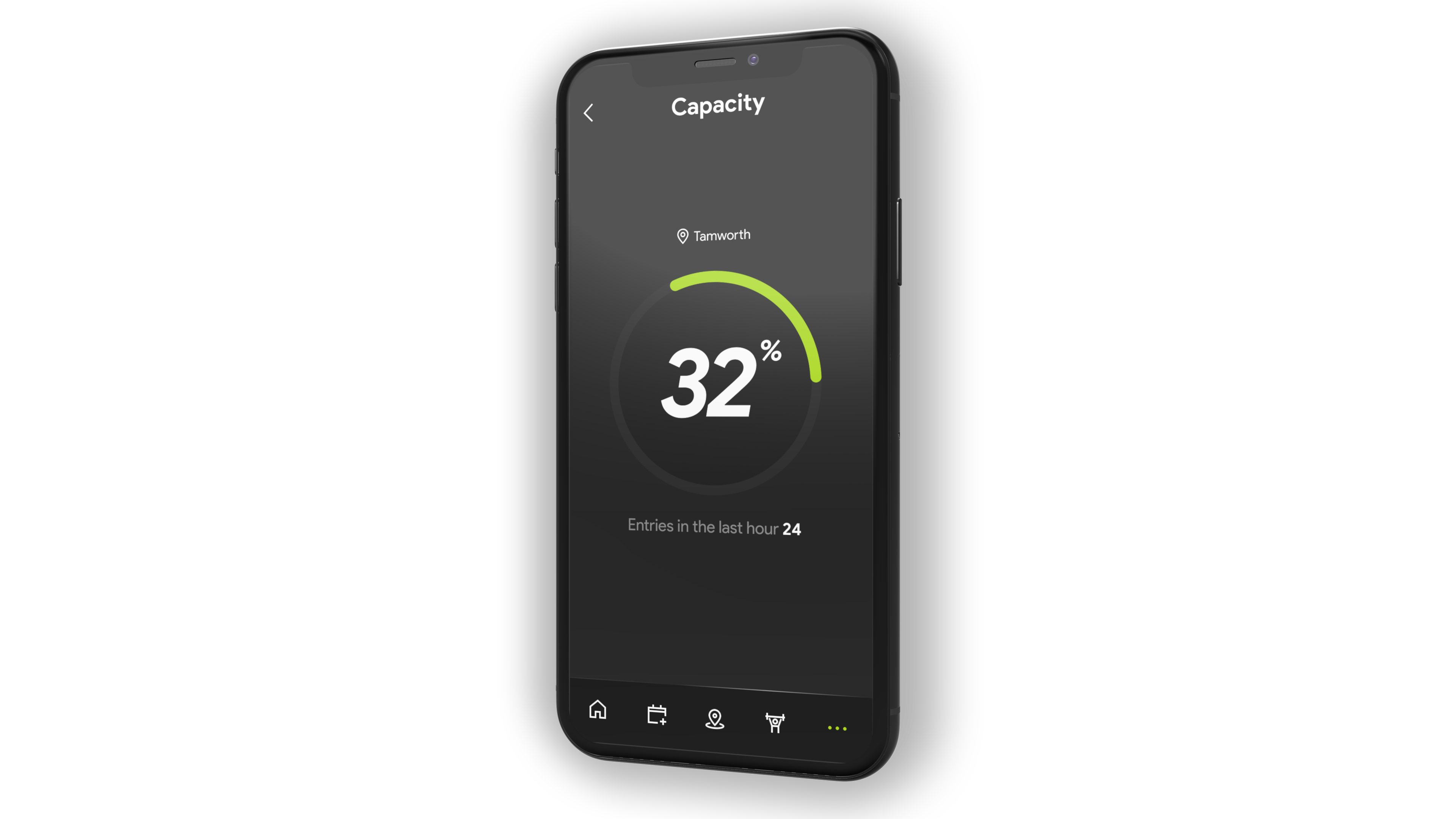 A live animated view of Gym entries in the last hour and total percentage capacity.