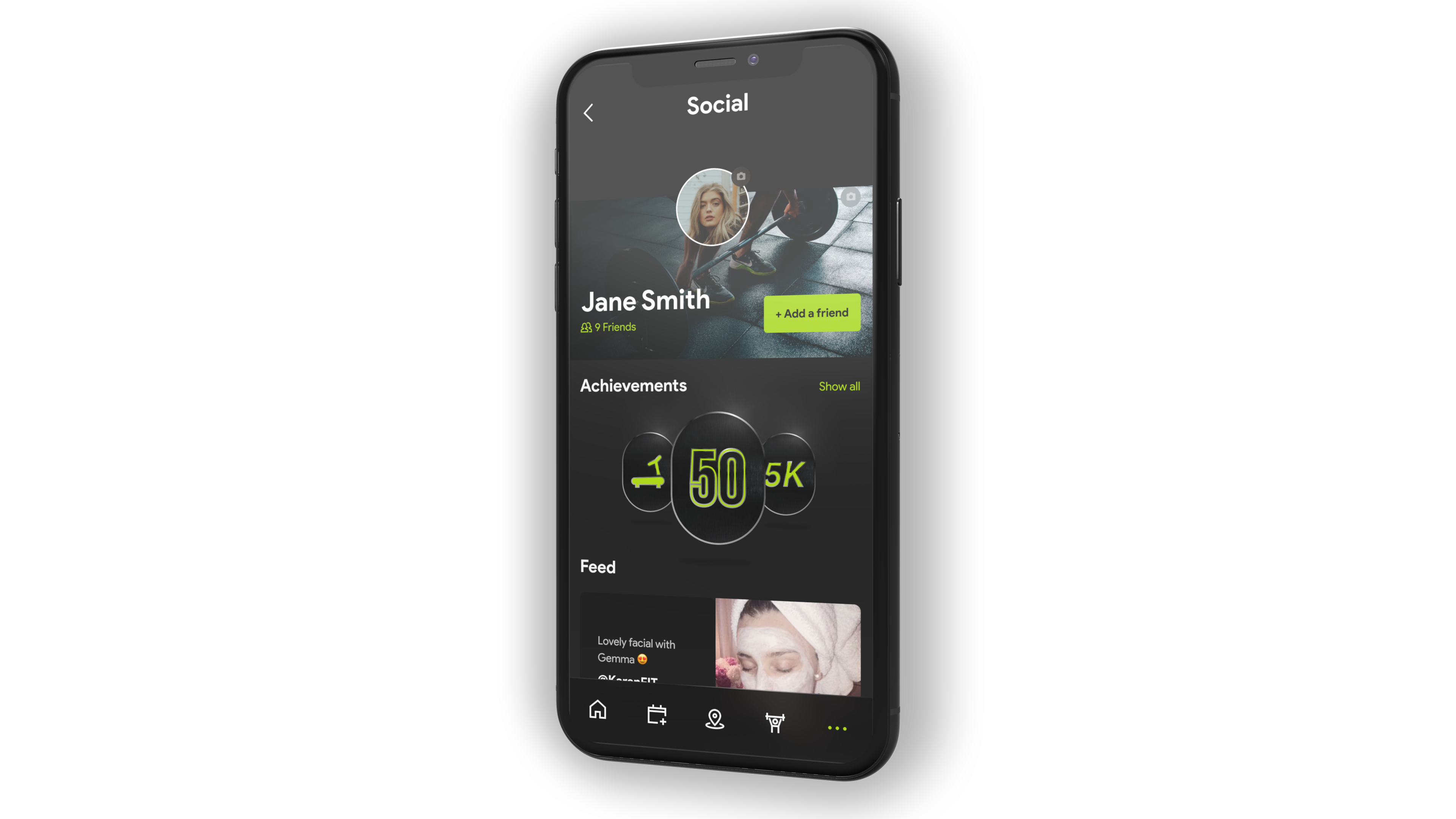 Profile pages and gym social network, allowing club members to share and follow as well as view each other's achievements.