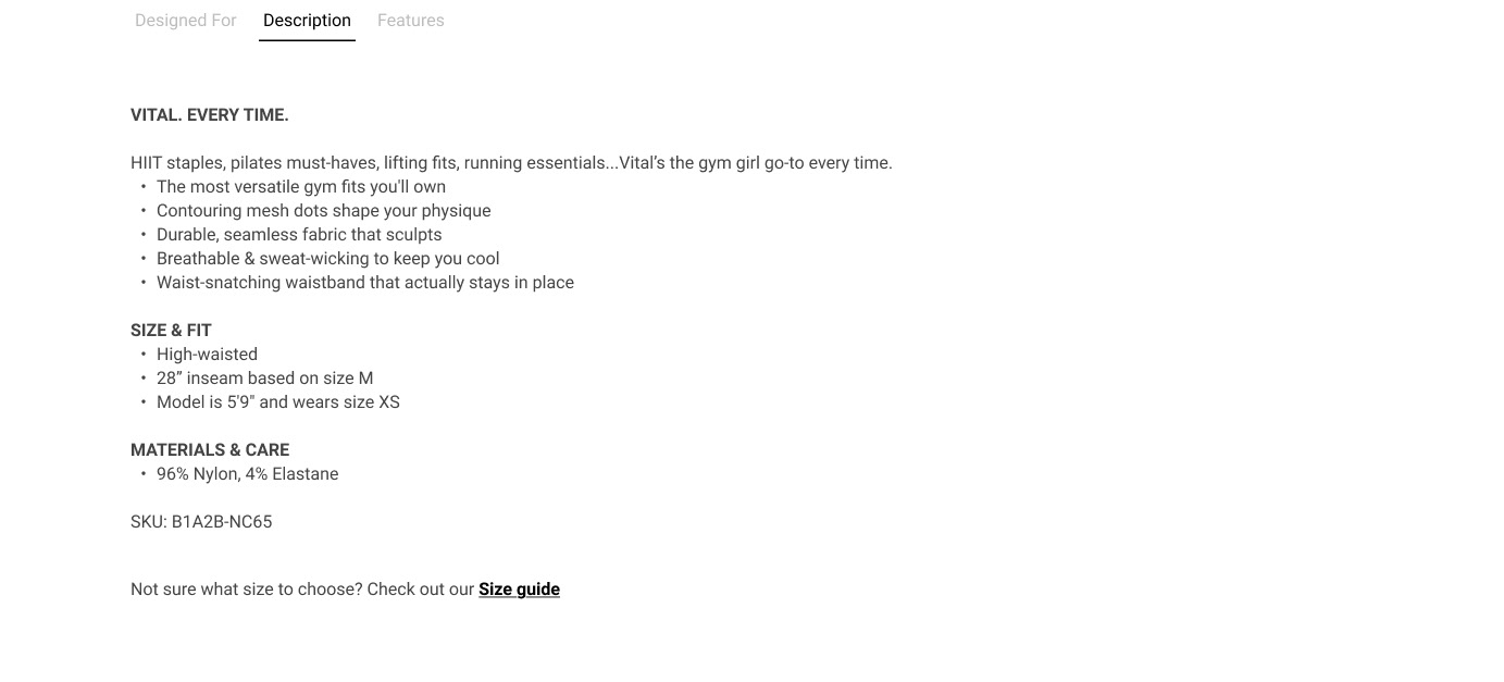 Designed intent, description, features, and sizing lacked structure, making the PDP feel fragmented and inconsistent.